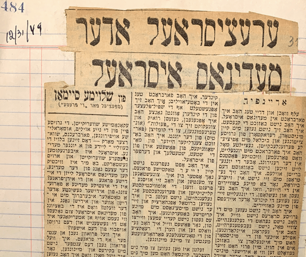 The book Medines Yisroel un Erets Yisroel was first published in installments, in the Buenos Aires newspaper Di Prese. The first installment appeared on December 31, 1949, and the last on August 16th of 1950. Given our world today, I promise not to take 8 months to share the translation from beginning to the end. The ending of the newspaper version appears to be noticeably different from that of the book. When we get there, I’ll take a look at what he changed, and why. But first things first.